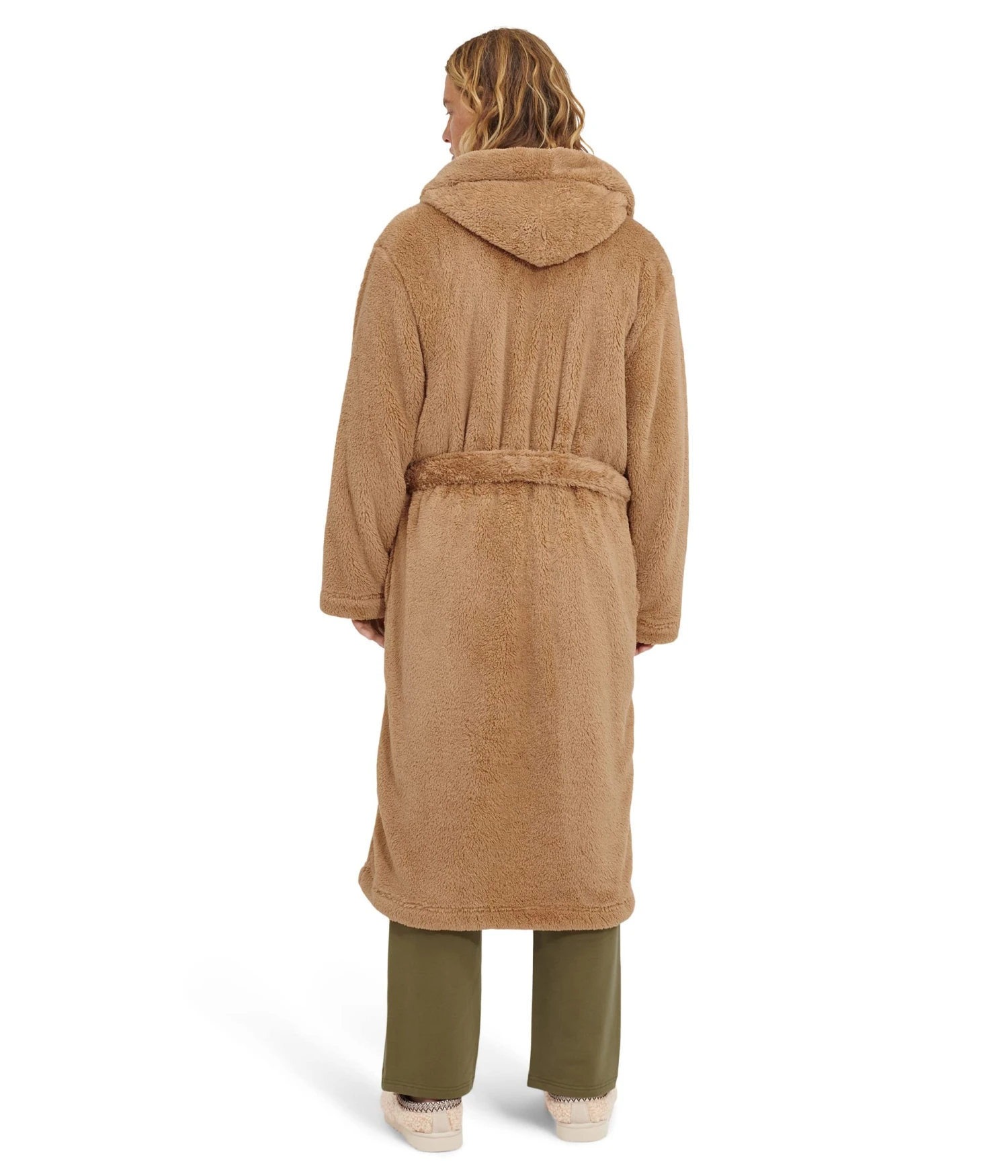 - Features sherpa hooded robe and long sleeves.